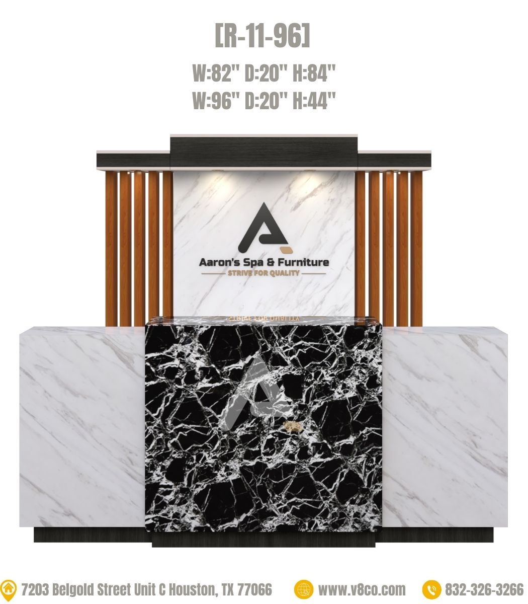 With the front of the reception desk is a combination of white and black marble-patterned PVC, the surface is glossy and easy to clean.Â