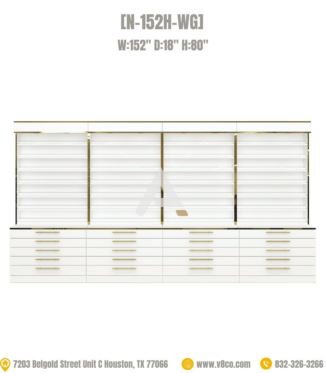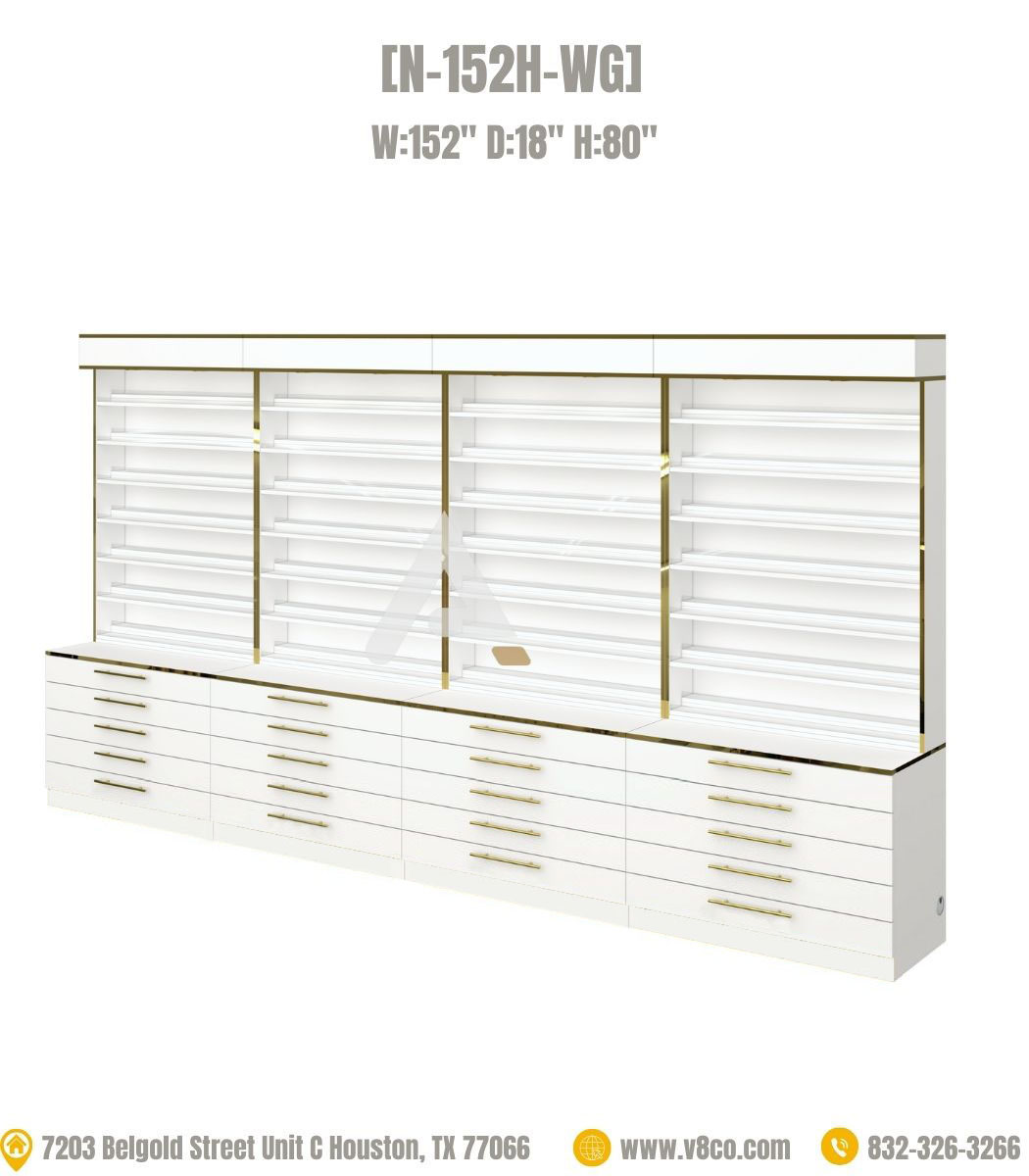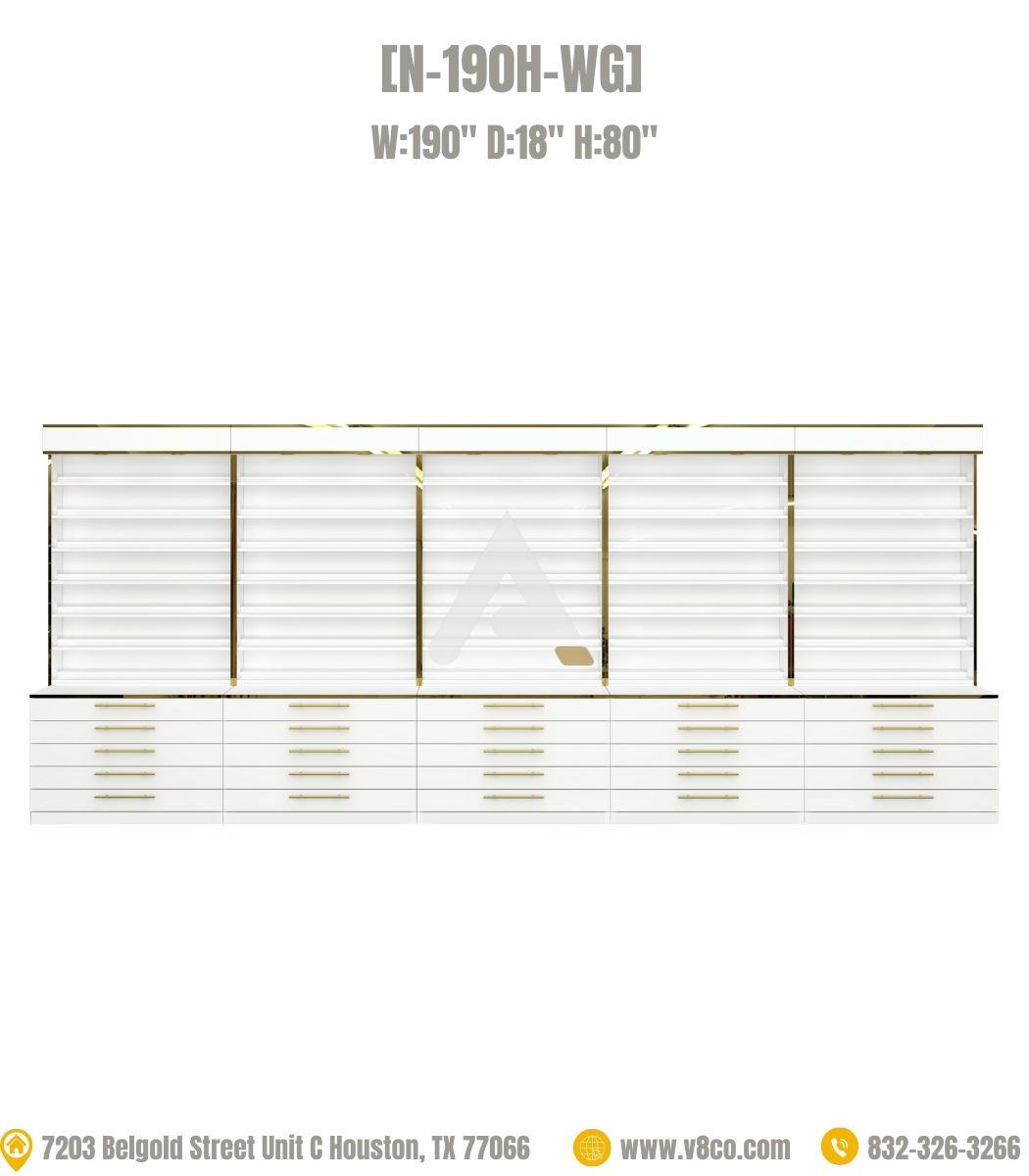 Step into a realm of pure luxury, discover our Luxe nail polish display cabinets collection. Large polish rack featuring white and gold elements, the ideal combination of minimalist style and clean lines brings fashion and elegance to your salon. Large polish rack with cabinet can display many large gel/polish bottle collections and powder jars in the lower compartment, which is convenient, cost-saving and neat, large polish rack will impress customers.