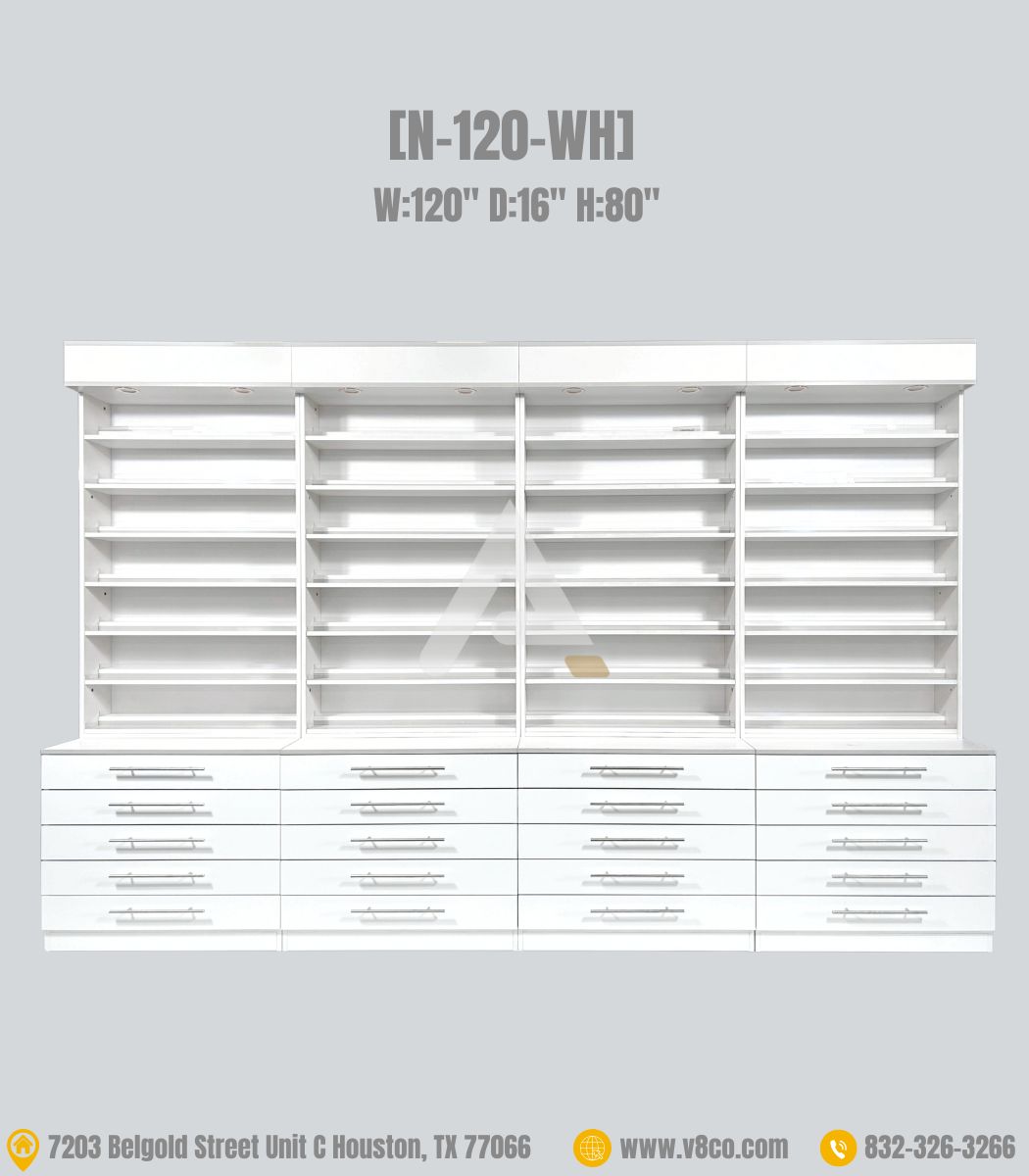 Belonging to the new collection – Polar collection. This is a completely new design with the main white tone combined with a light gray border to highlight and create accents for the nail polish storage cabinet. This nail polish cabinet is a harmonious combination, both sophisticated and modern, bringing a new look to the nail salon. This nail polish cabinet in particular has a variety of optional sizes to suit your polish/gel and powder display needs or salon space. In particular, the nail polish storage cabinet will highlight the polish/gel and powder collections for the salon.