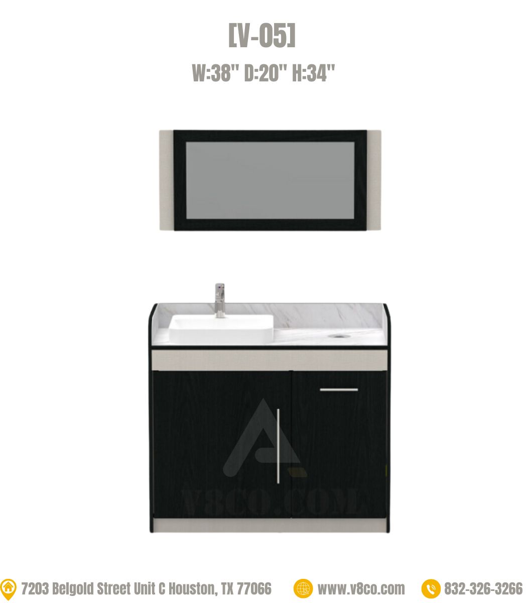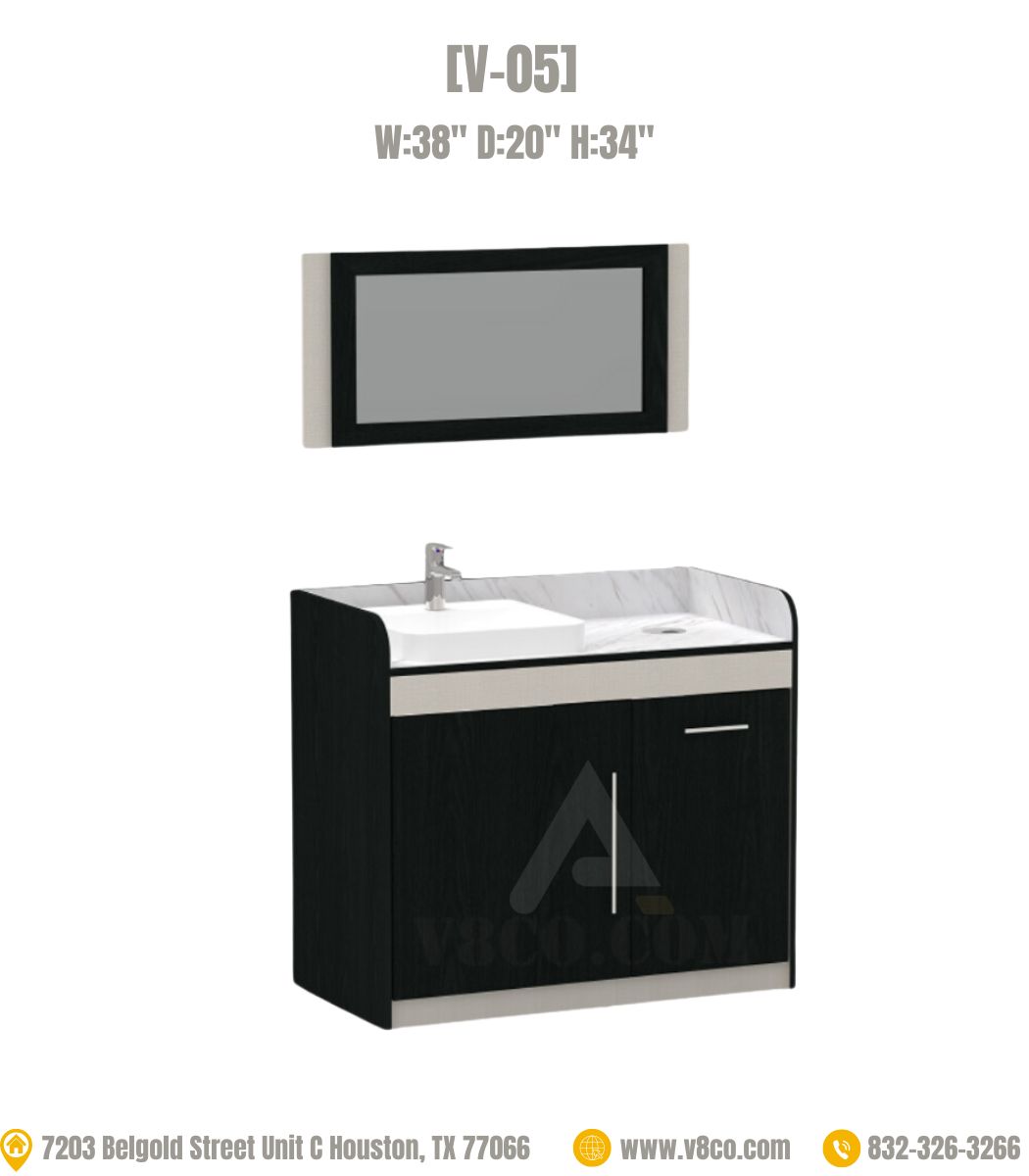 This beautiful sink cabinet features elegant raised square white sink and the marble acrylic top.