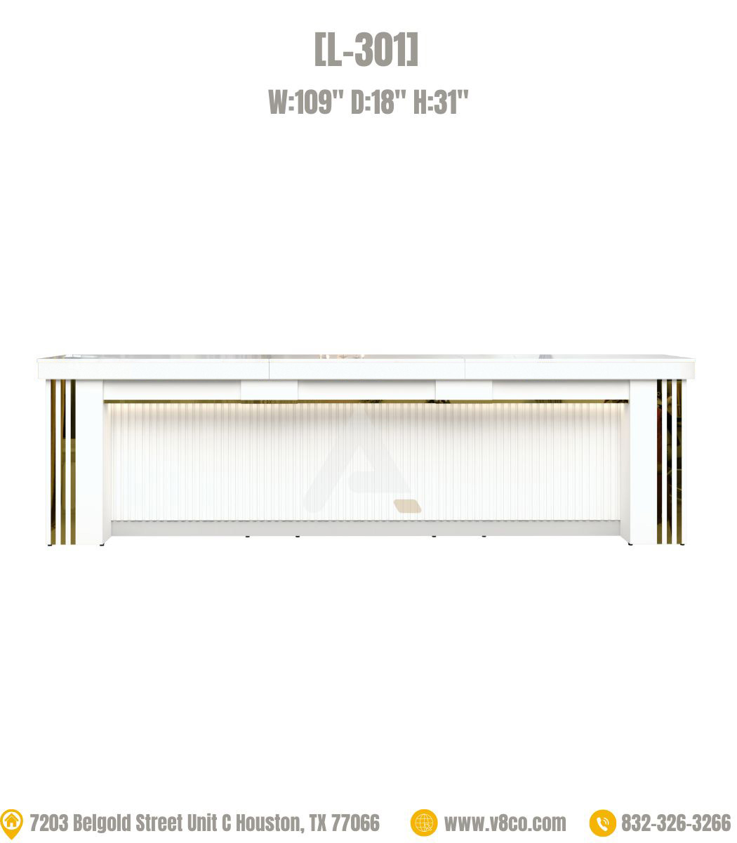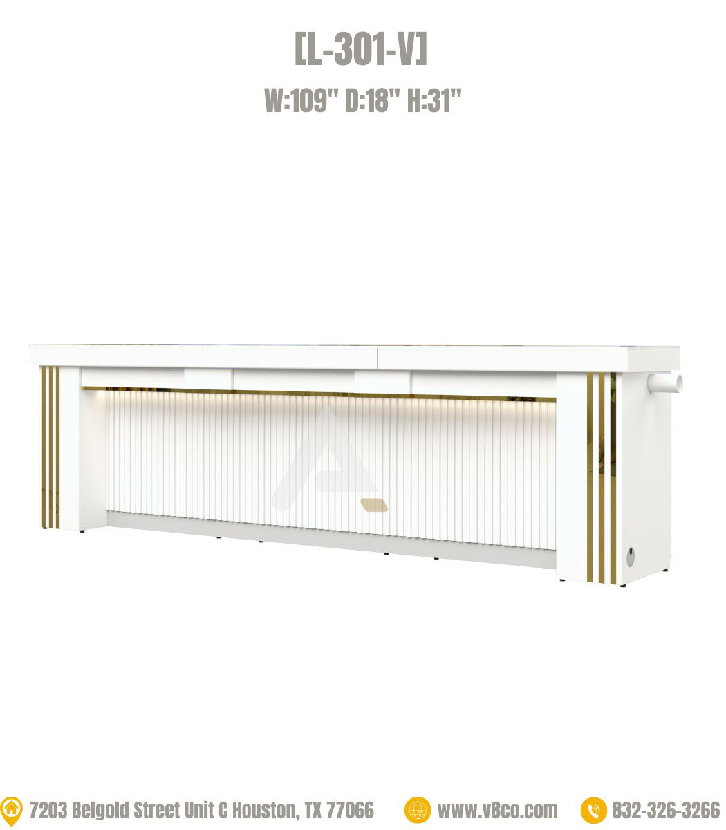 The exquisite blend of elegance and sophistication with white and gold accents transforms your salon into a breathtaking masterpiece. Triple manicure table is solidly constructed with quality MDF (medium density fiberboard) that is built to last. With a stylish center panel and elegant marble top, it brings a touch of glamour to your space.